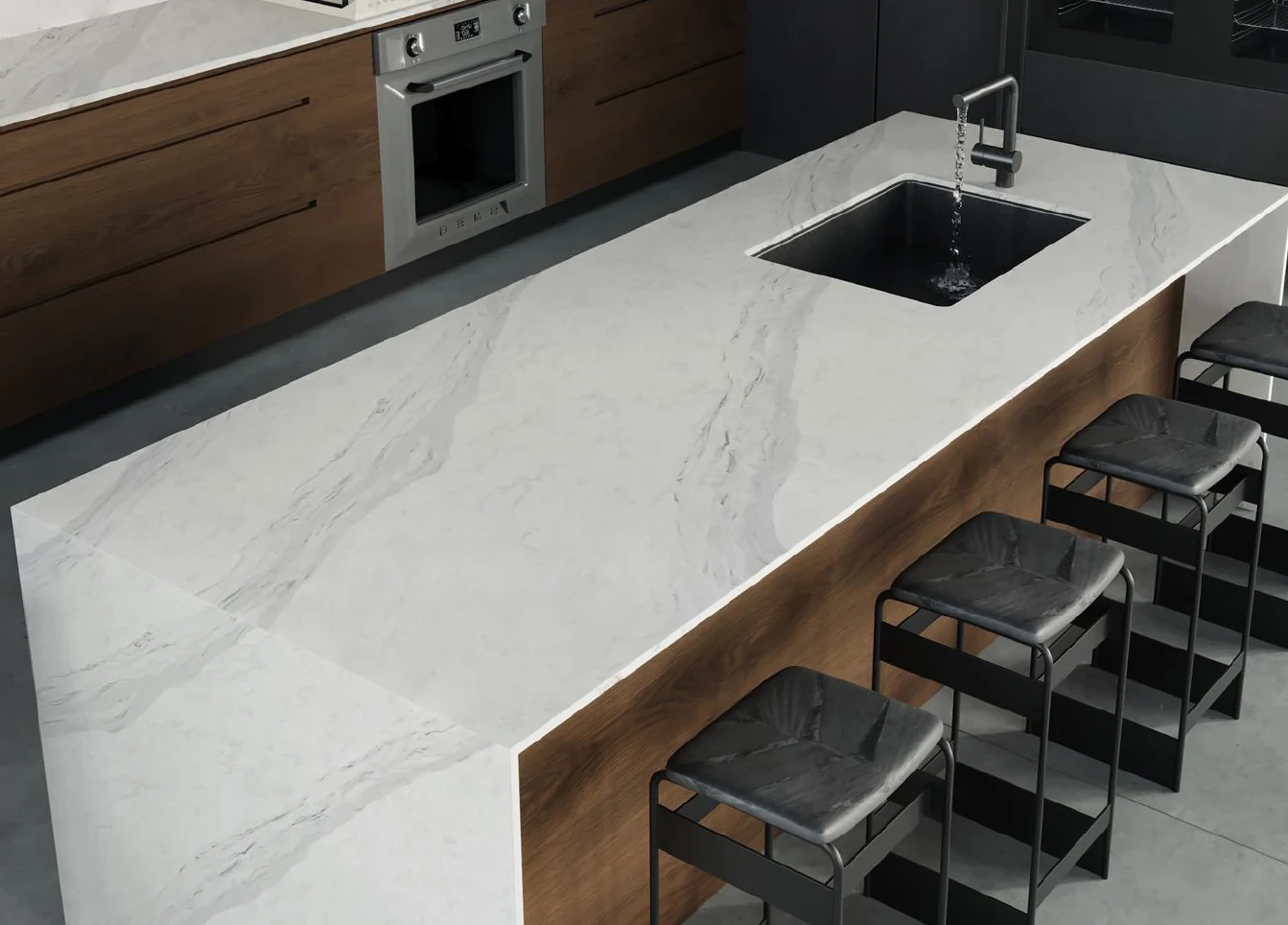 An impenetrable surface that is highly nonporous and nonabsorbent made to be impervious to stains and easy to maintain